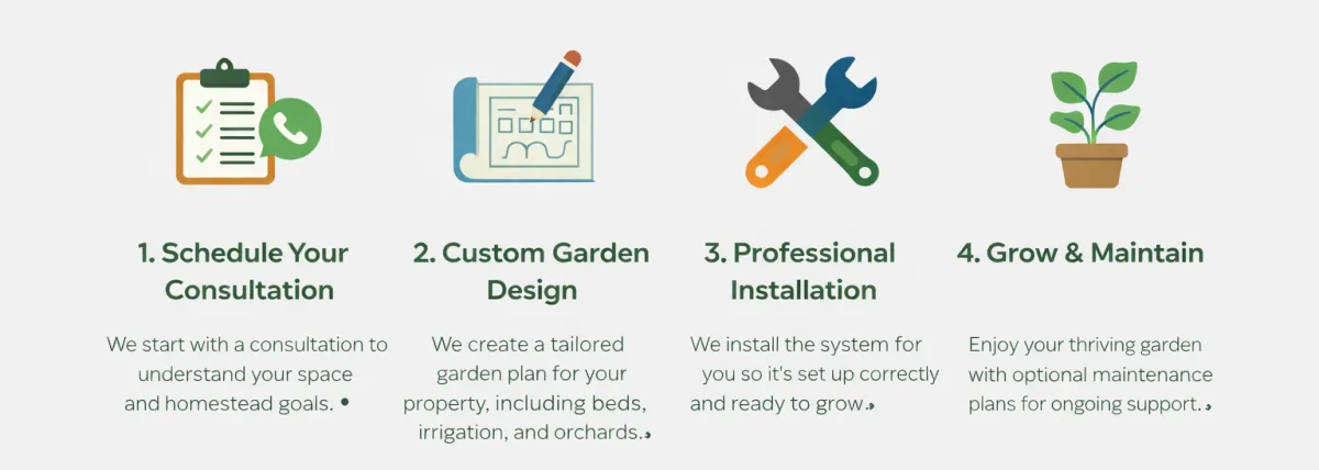 Schedule a quick consultation and we’ll design a garden system tailored to your space, goals, and budget.
